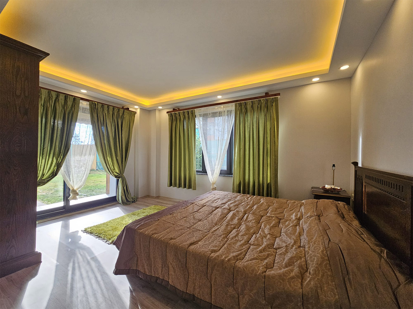 • Havuz manzaralı çift kişilik yatak odası